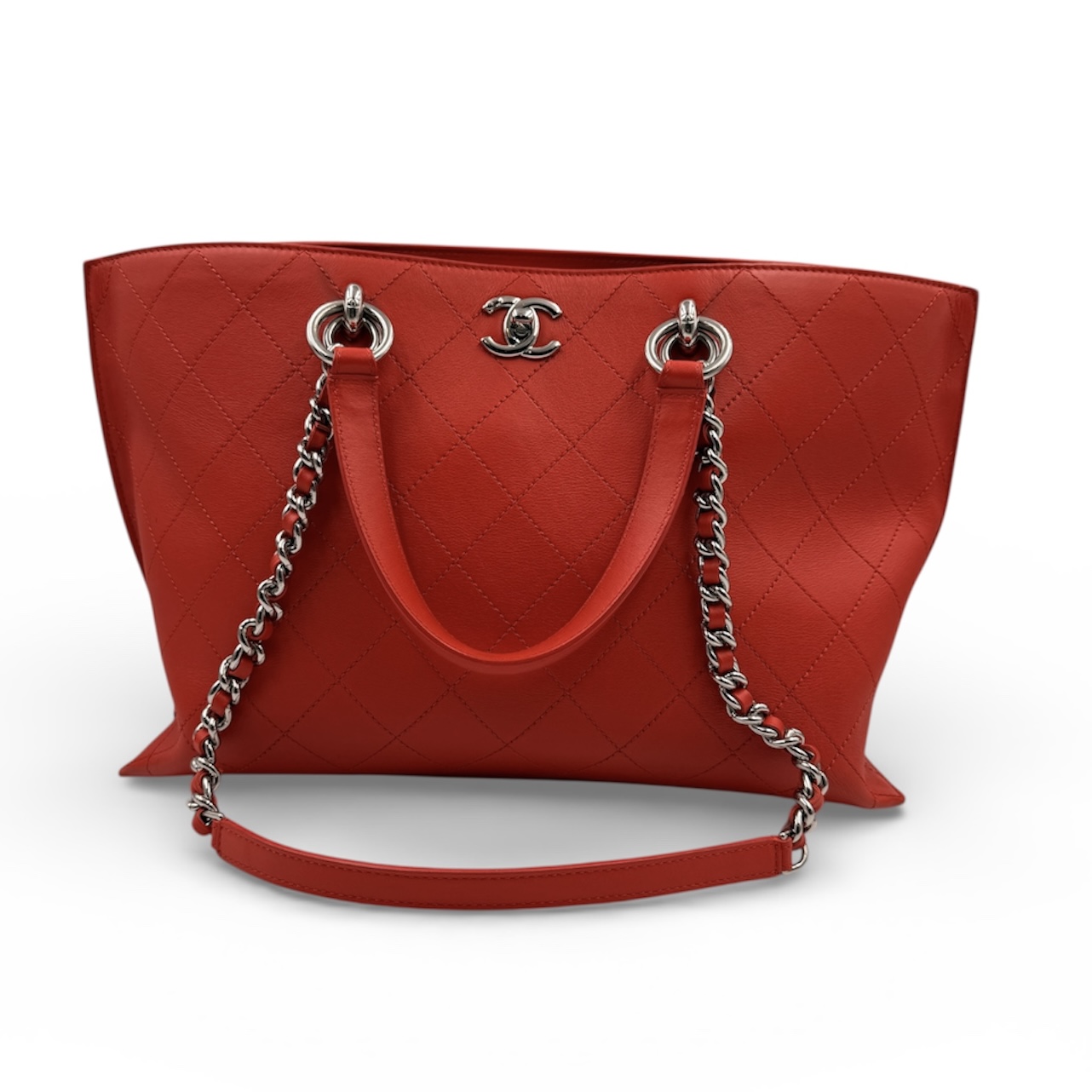 CHANEL SAC CABAS CUIR ROUGE BIJOUTERIE PHW (23801443) V.P. CIRCA 2016-2017 + DB