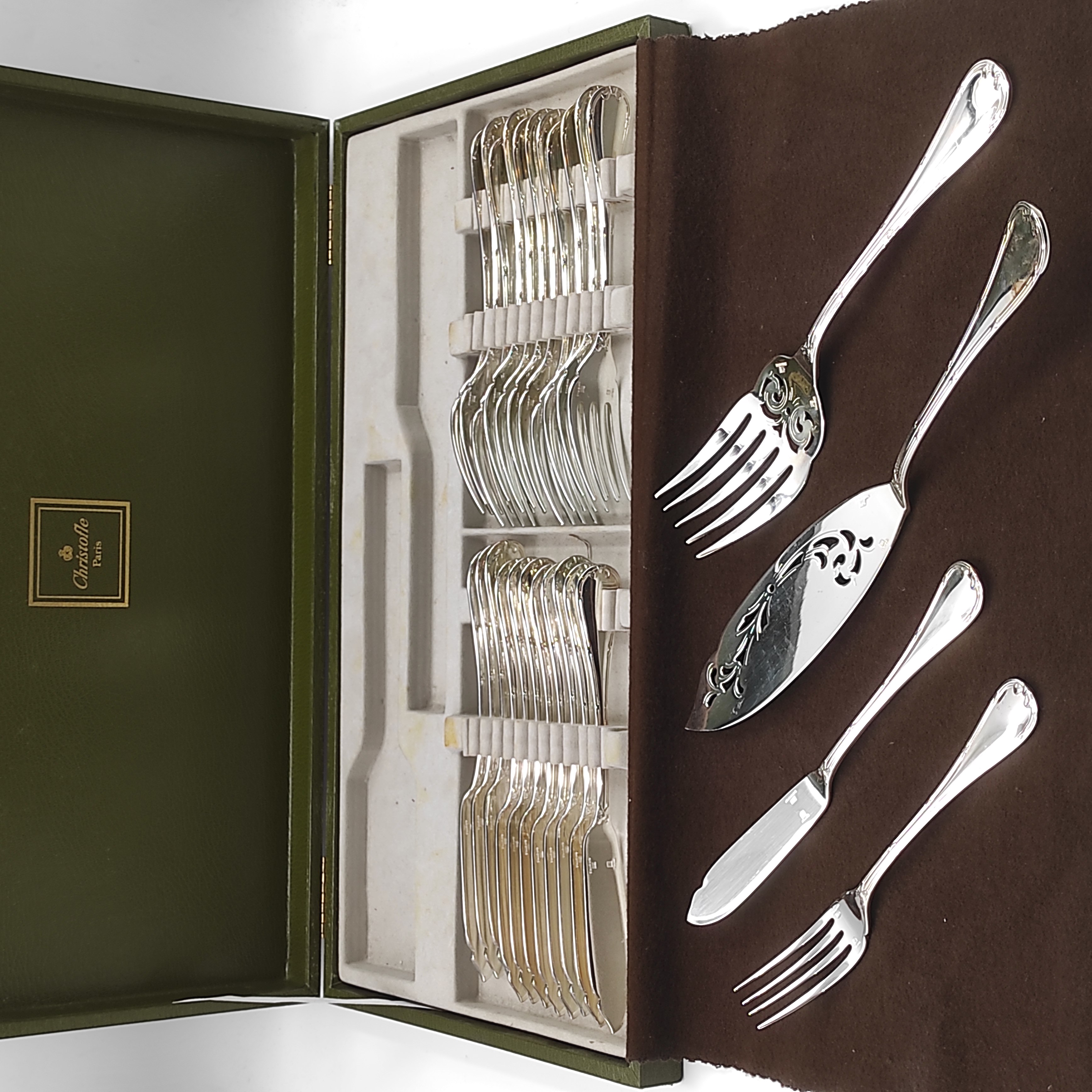 CHRISTOFLE RUBANS CROISES SERVICE A POISSON EN METAL ARGENTE + BOITE