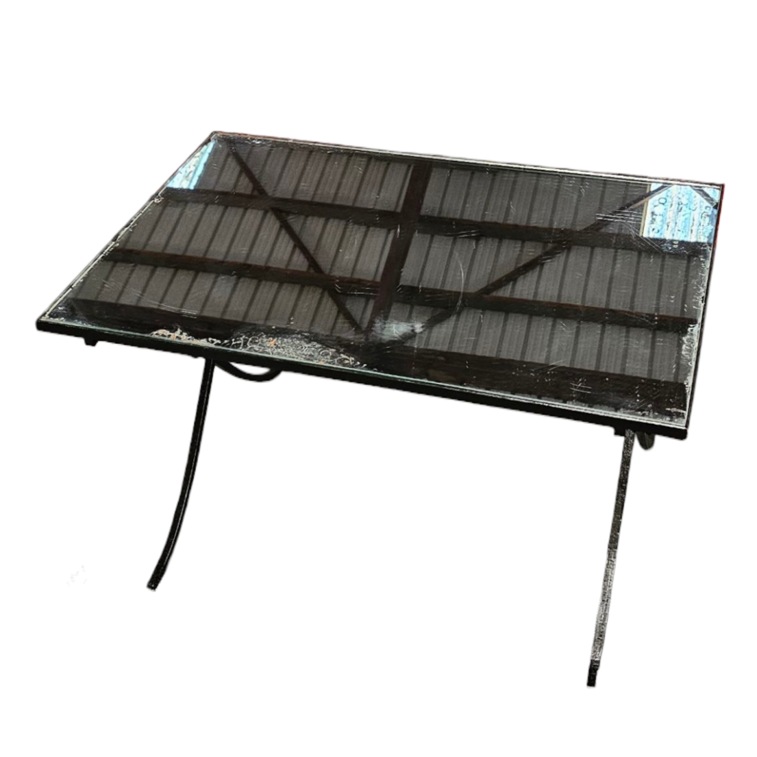 TABLE BASSE ANNEES 50 VERRE ET METAL NOIR 61 X 46 X 46