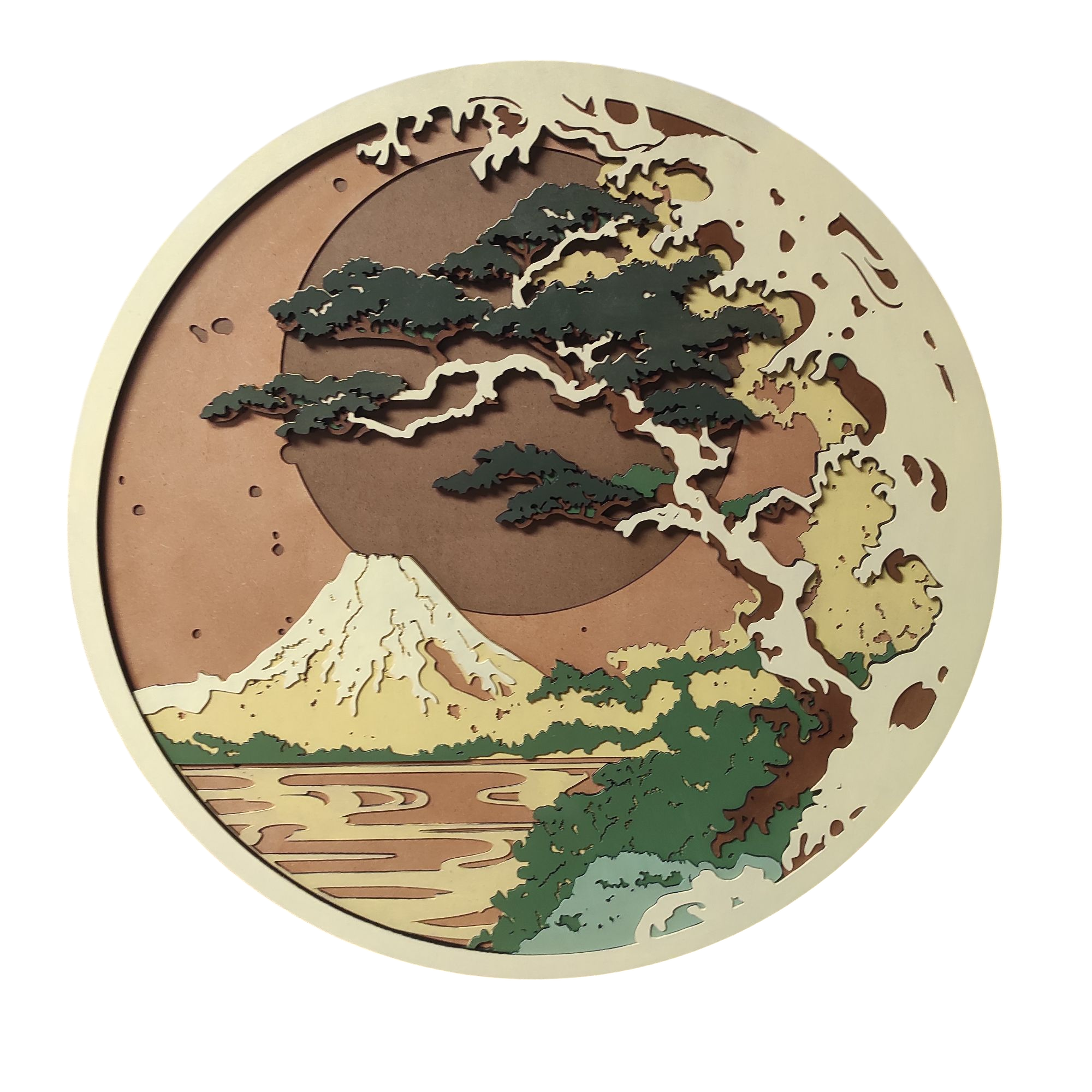 TABLEAU EN RELIEF PAYSAGE JAPONAIS DIAM 80CM